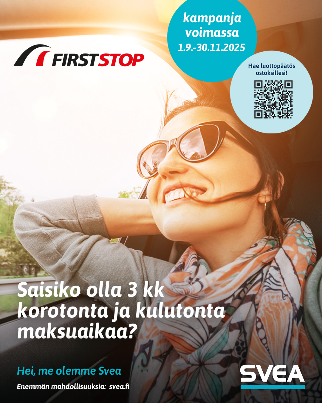 Meillä voit maksaa niin huollot, varaosat kuin renkaatkin, myös laskulla tai kätevästi erissä. Tarjoamme Svea-rahoituksella jopa 3 kuukautta korotonta ja kulutonta maksuaikaa. Myös pidempi, 12 kuukauden maksusuunnitelma on saatavilla nollakorolla (avausmaksu 5 €).